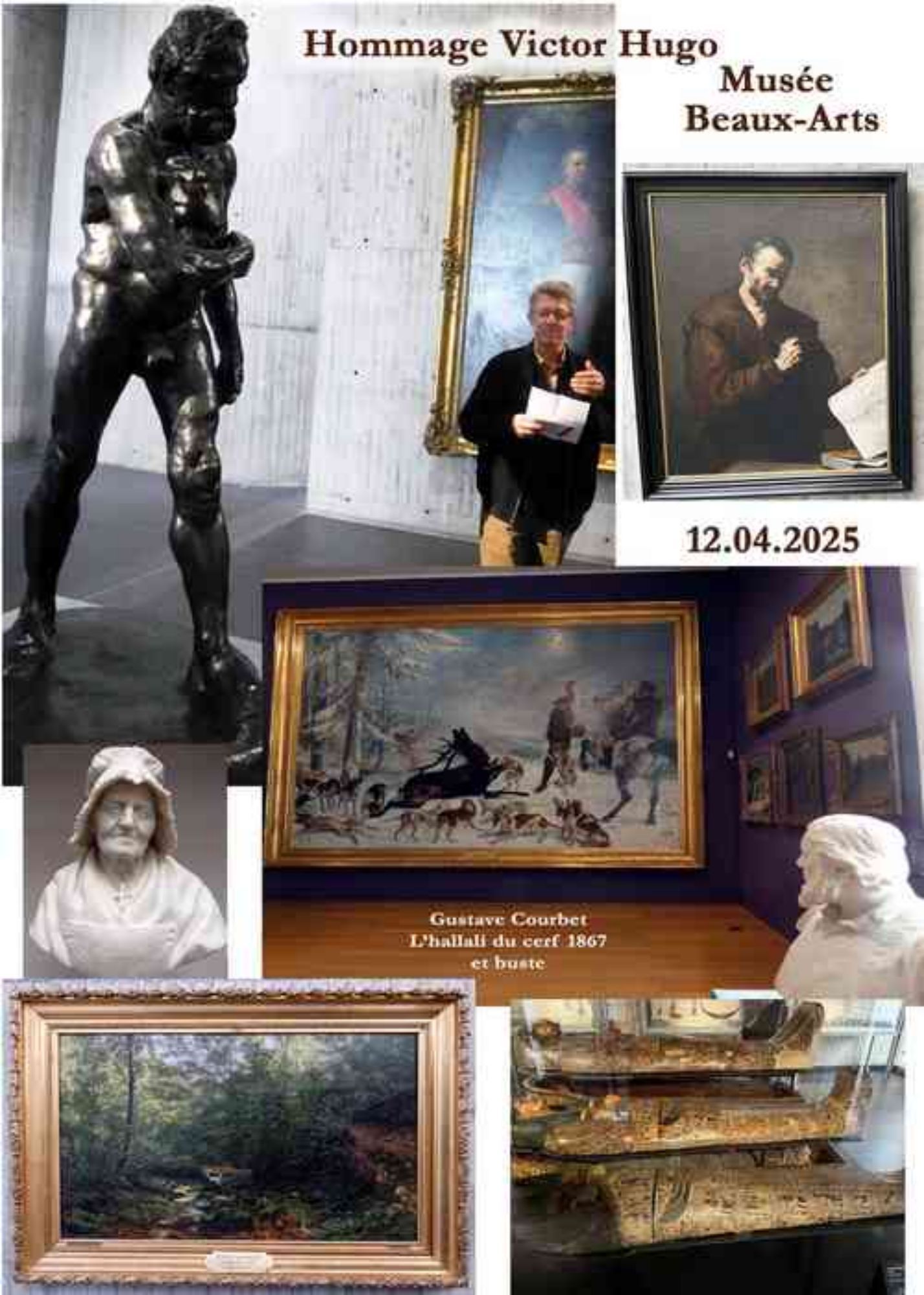 Au Musée des beaux-Arts, devant le nu de Victor Hugo par Rodin, Jean-Charles Dorge, président de la SPF rend un hommage à Hugo en évoquant la donation à la ville de Besançon, du galeriste à la tête de la prestigieuse fondation de Martigny, Leonard Gianadda. Le moule en plâtre de cette statue, -pour laquelle Hugo n’a jamais posé d’ailleurs-, avait été retrouvée lors d'une mise à jour de l’inventaire du musée Rodin. La fonderie d’art Coubertin va en réaliser trois statues. Ici, numéro II, 250 kilos de bronze de patine sombre, représentant un Victor Hugo debout, avec à la fois le visage d’un vieil homme et un corps musculeux, en fait un homme toujours combatif malgré les épreuves.